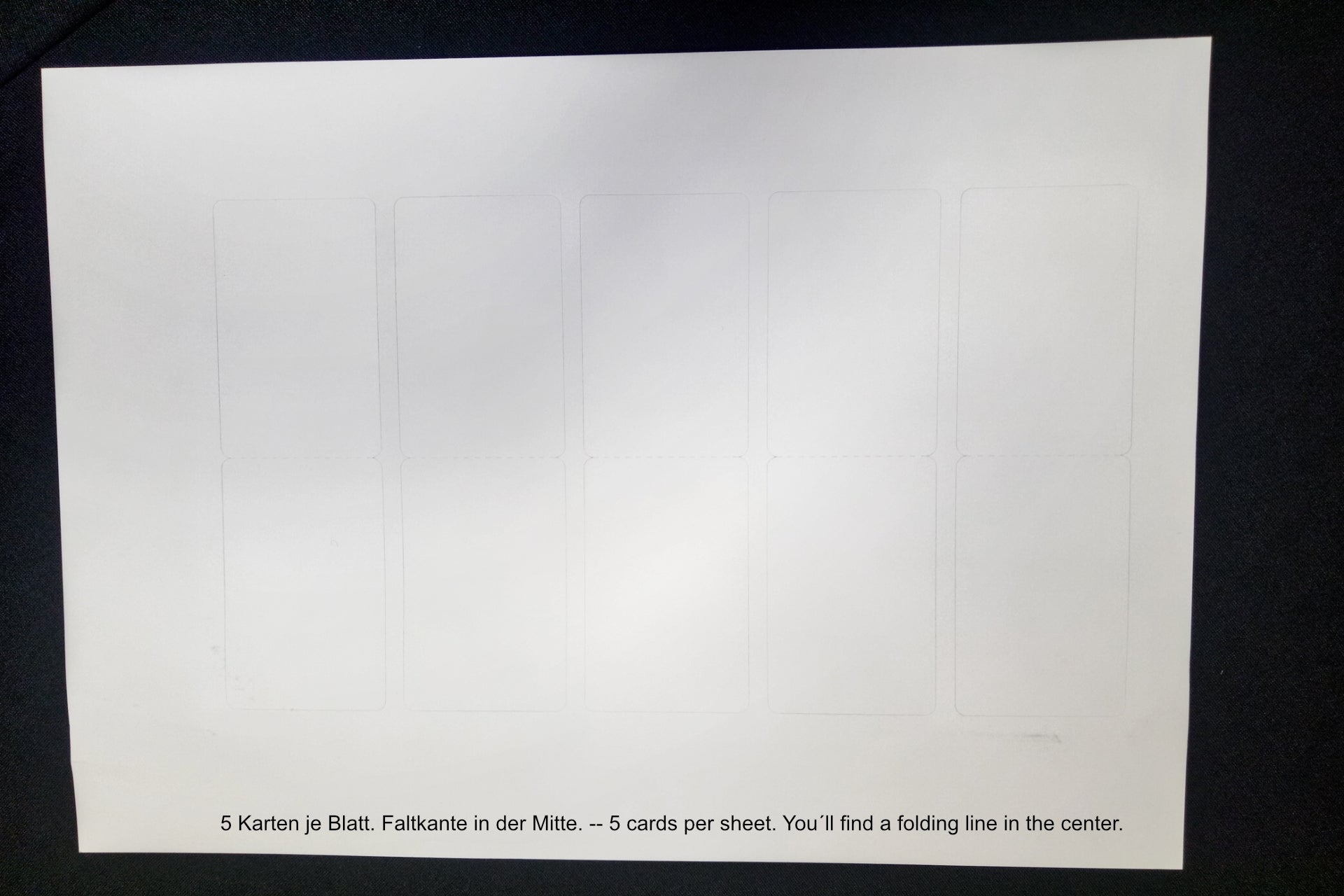 Vorlage zum DOWNLOAD. Bitte beachten Sie, dass die zu sehenden Rahmen NICHT mitgedruckt werden sollen, sondern nur als Orientierung dienen. Grundsätzliches Problem ist, dass jeder Drucker ein wenig anders agiert und deshalb braucht es die Bereiche zwischen den Karten, d.h. Sie sollten in jedem Fall überlappend arbeiten.