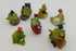 Froschkönige mit unterschiedlichen Farben als Spielerfiguren; Design je Farbe unterschiedlich