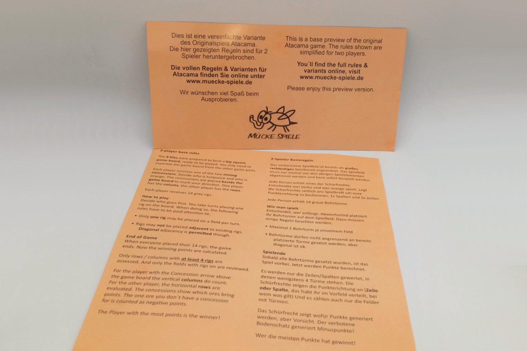 Ein taktisches Brettspiel von Martin Schlegel rund um die Erzförderung in der chilenischen Wüste für 2 Spieler ab 10 Jahren