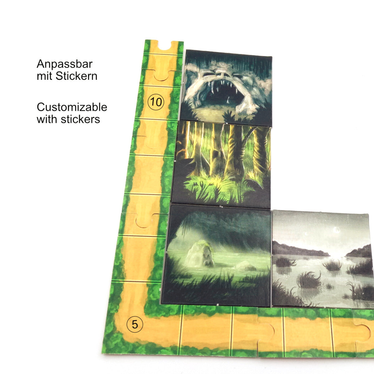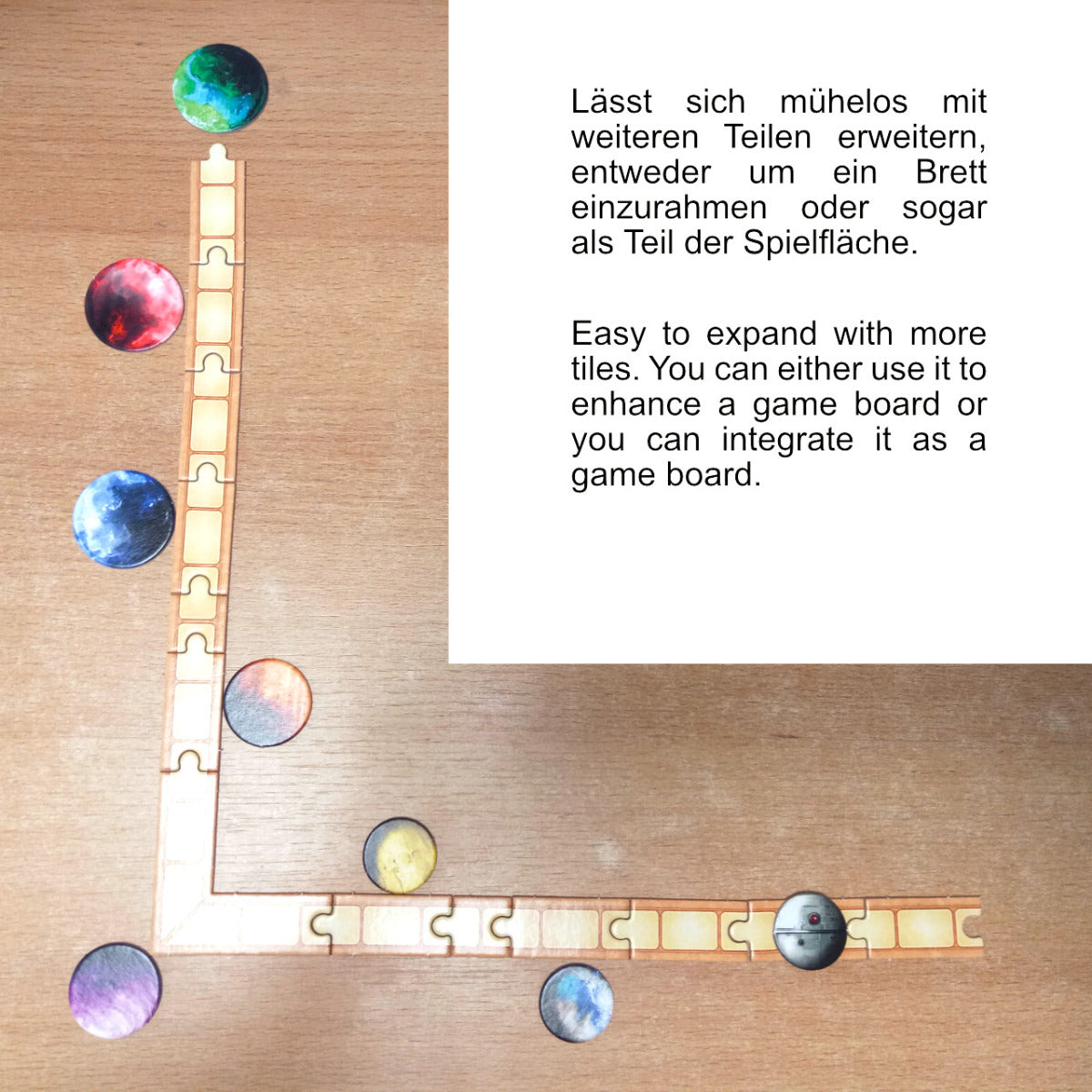 Counter mit Puzzelnasen zur Darstellung einer Siegpunktleiste, kann um ein Spielfeld oder Spielfeldteile herum platziert werden