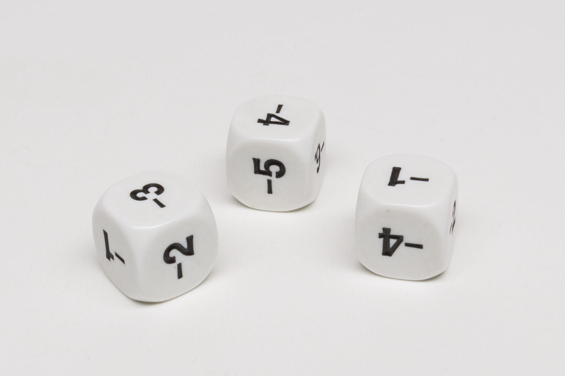 Würfel aus Plastik, mit den Werten -1 bis -6, 15 mm