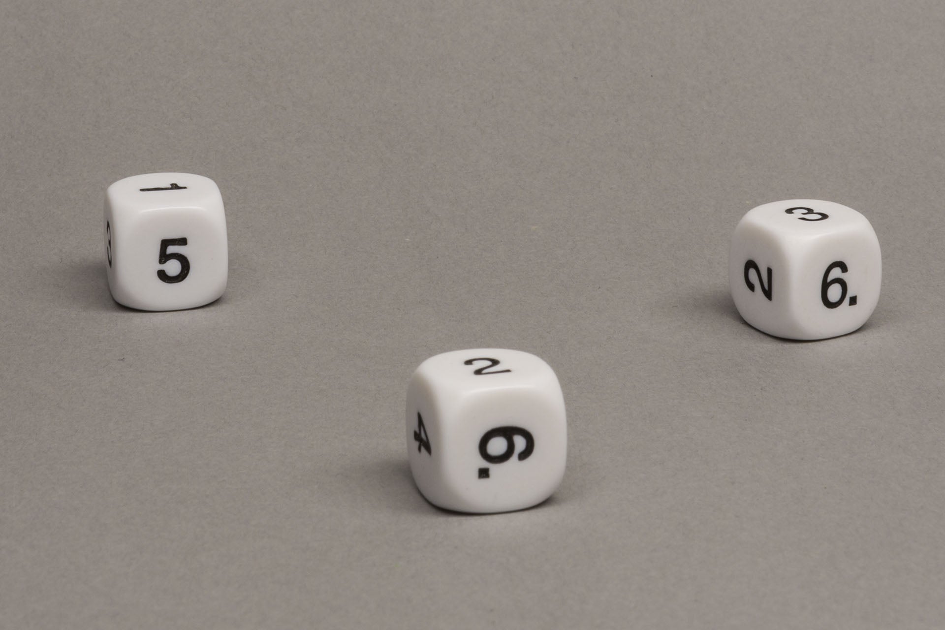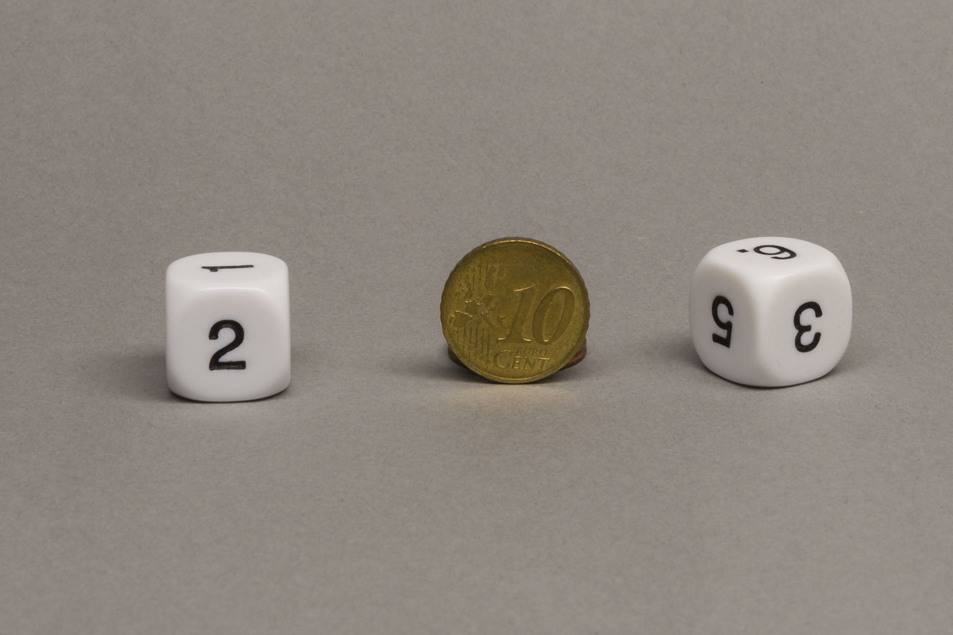 Würfel mit schwarzen Zahlen von 1:6, 15 mm