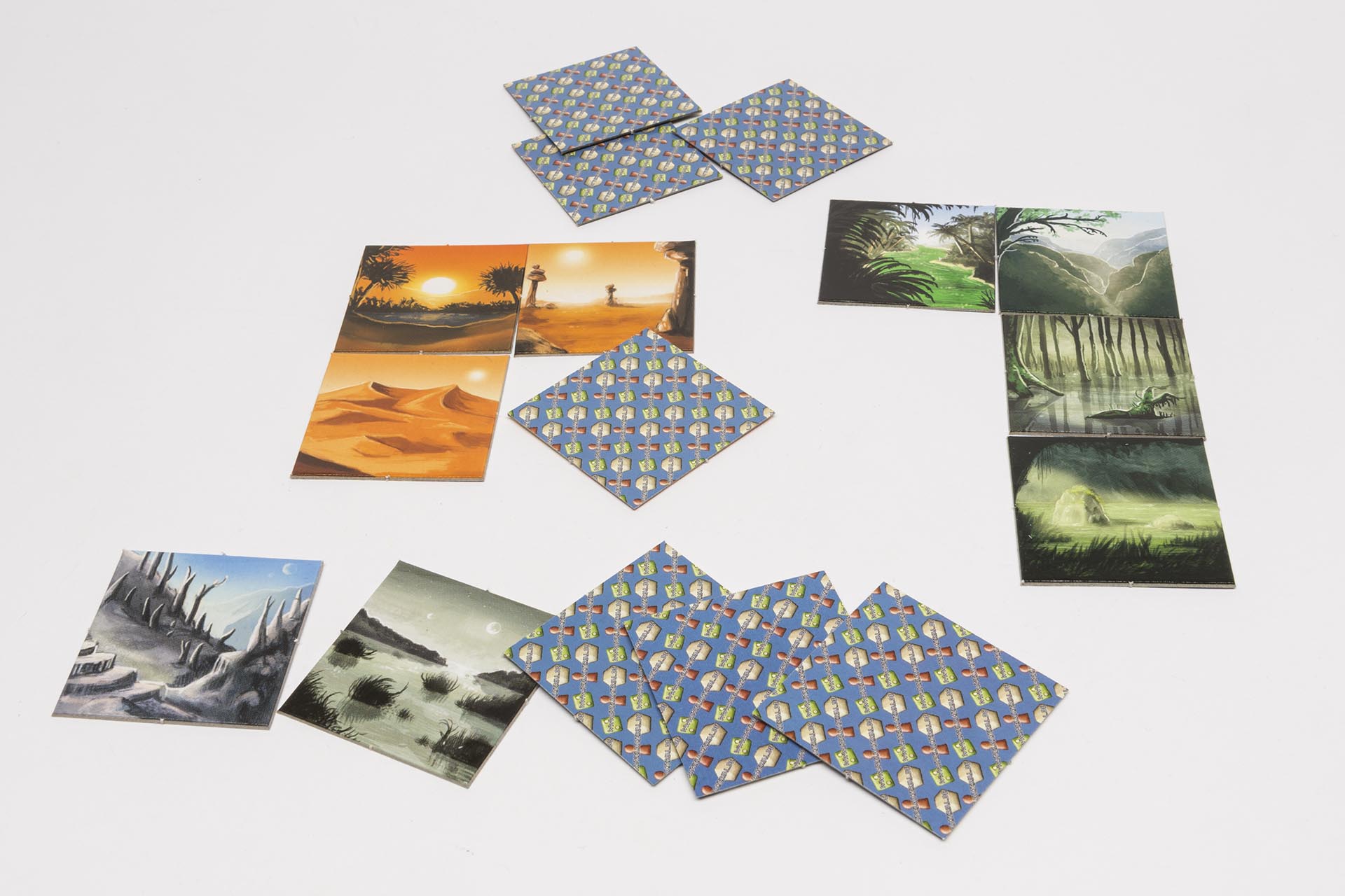 Quadratische Counter mit Aufdruck verschiedener Landschaftstypen