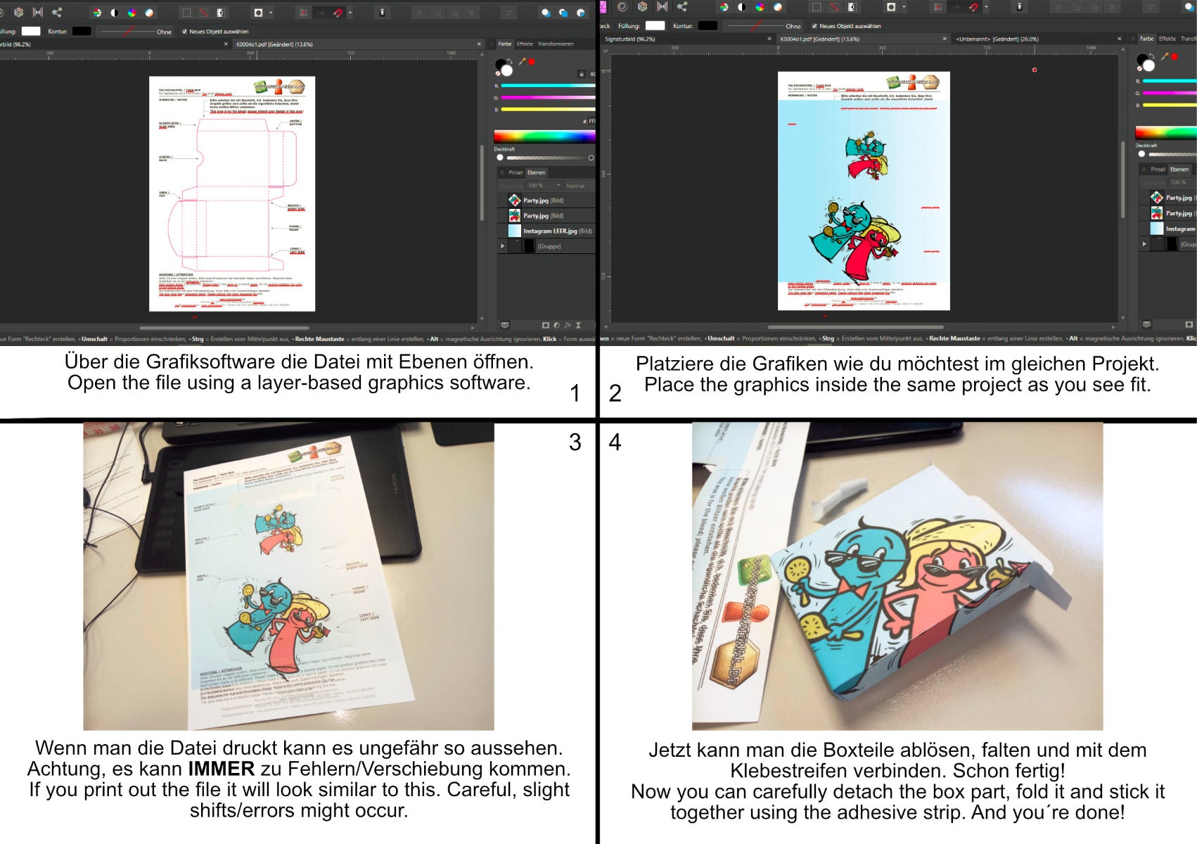 Diese Vorlage ist schwieriger als unsere übrigen. Die Vorlage ist eine Pdf. Wir empfehlen einen Pdf-Creator oder -Editor zu benutzen, wahlweise eine Grafiksoftware, die mit Ebenen arbeitet, statt Word, wie sonst.
