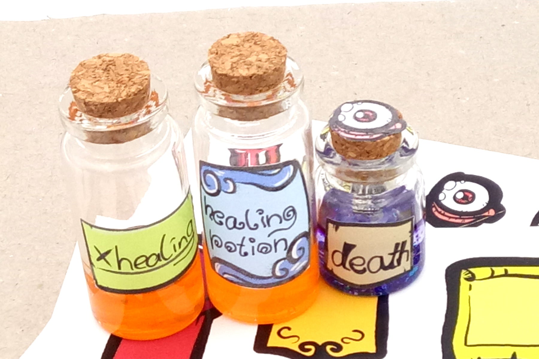 Labelbogen A5 mit 25 verschiedenen Fantasiesymbolen, passend zu unseren selbst hergestellten Potions für Rollenspieler, oder als Farbtupfer für unseren Rollenspieler - Block.