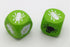 Würfel aus Holz: hellgrüner Würfel 2x Blatt, 3x weiße Spinne, 1x schwarze Spinne