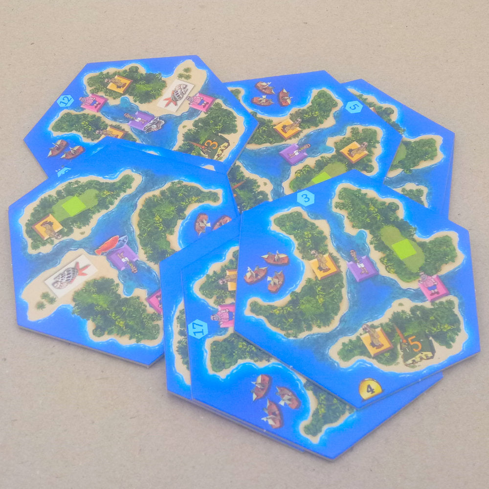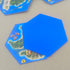 Hexagon 52 mm edge length made of cardboard, one side printed (BigKini game), one side completely blue