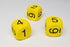 Foam dice with black numbers, 50 x 50 mm, in yellow