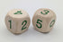 Wooden dice 20mm, natural with green numbers 0 to 5.