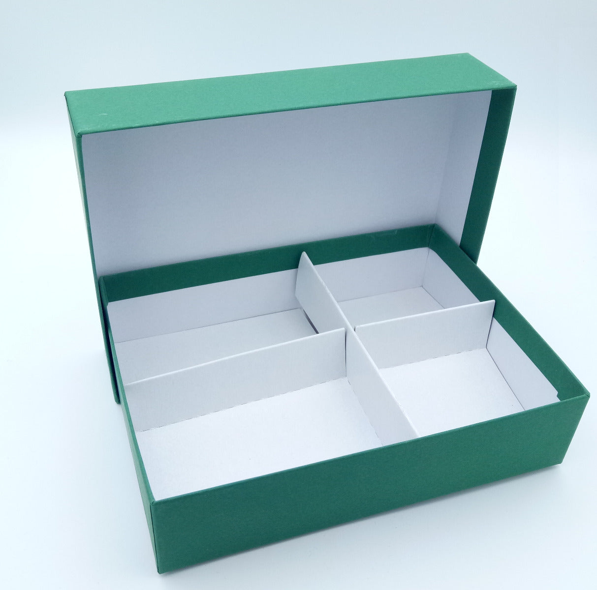 Insert designed to fit A6 format to prevent game material from slipping. It features four slightly offset compartments.