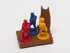Plastic playing figures (height 22 m) in yellow-orange, red, blue with round base