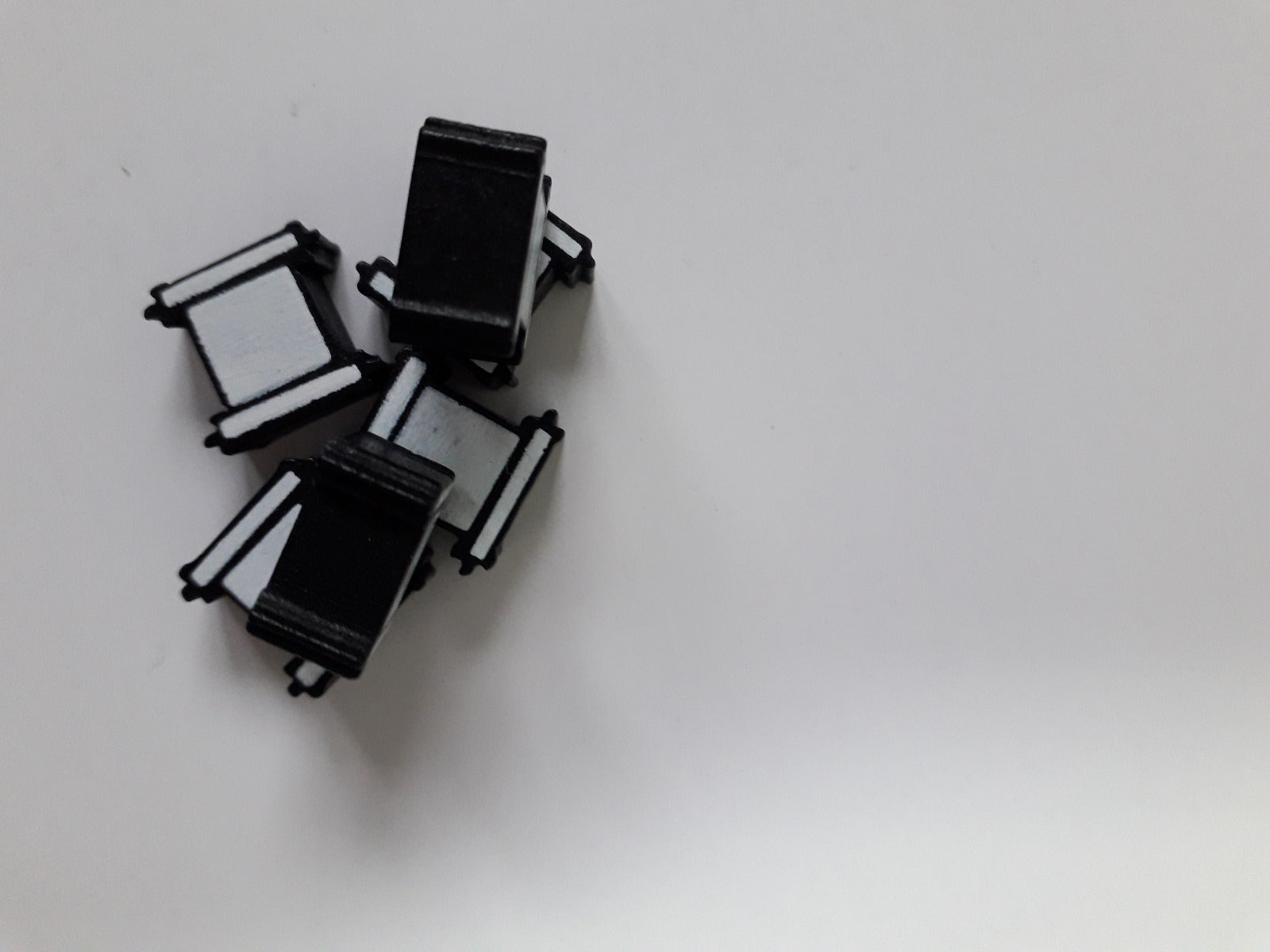 Wooden game piece in the shape of a candle holder, with engraved patterns by .